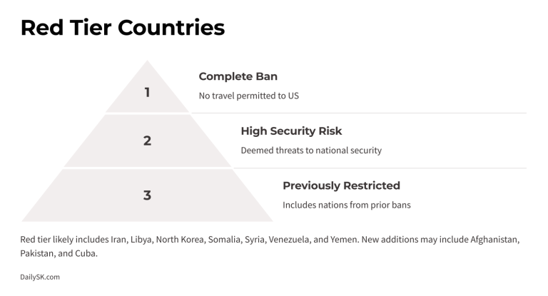 미국 트럼프 행정부가 기존 41개국에서 확대된 총 43개국을 대상으로 여행 제한을 검토 중이라고 뉴욕타임스(NYT)가 보도했다. 익명의 미국 정부 관계자를 인용한 보도에 따르면, 미국은 해당 국가들을 Red, Orange, Yellow 3개 그룹으로 나누어 비자 정책을 조정할 계획이다. 미국 국무부와 보안 기관이 협력하여…